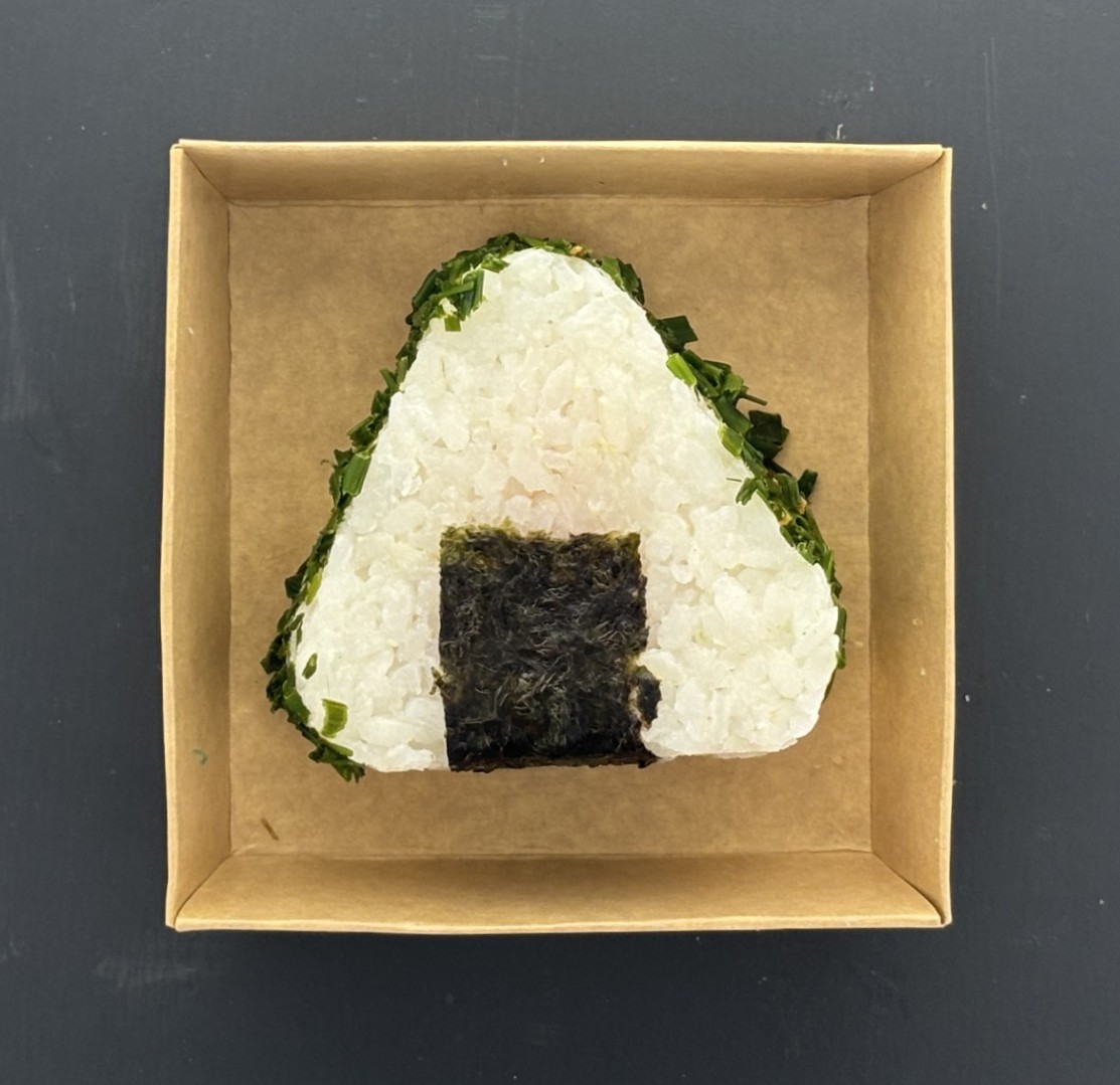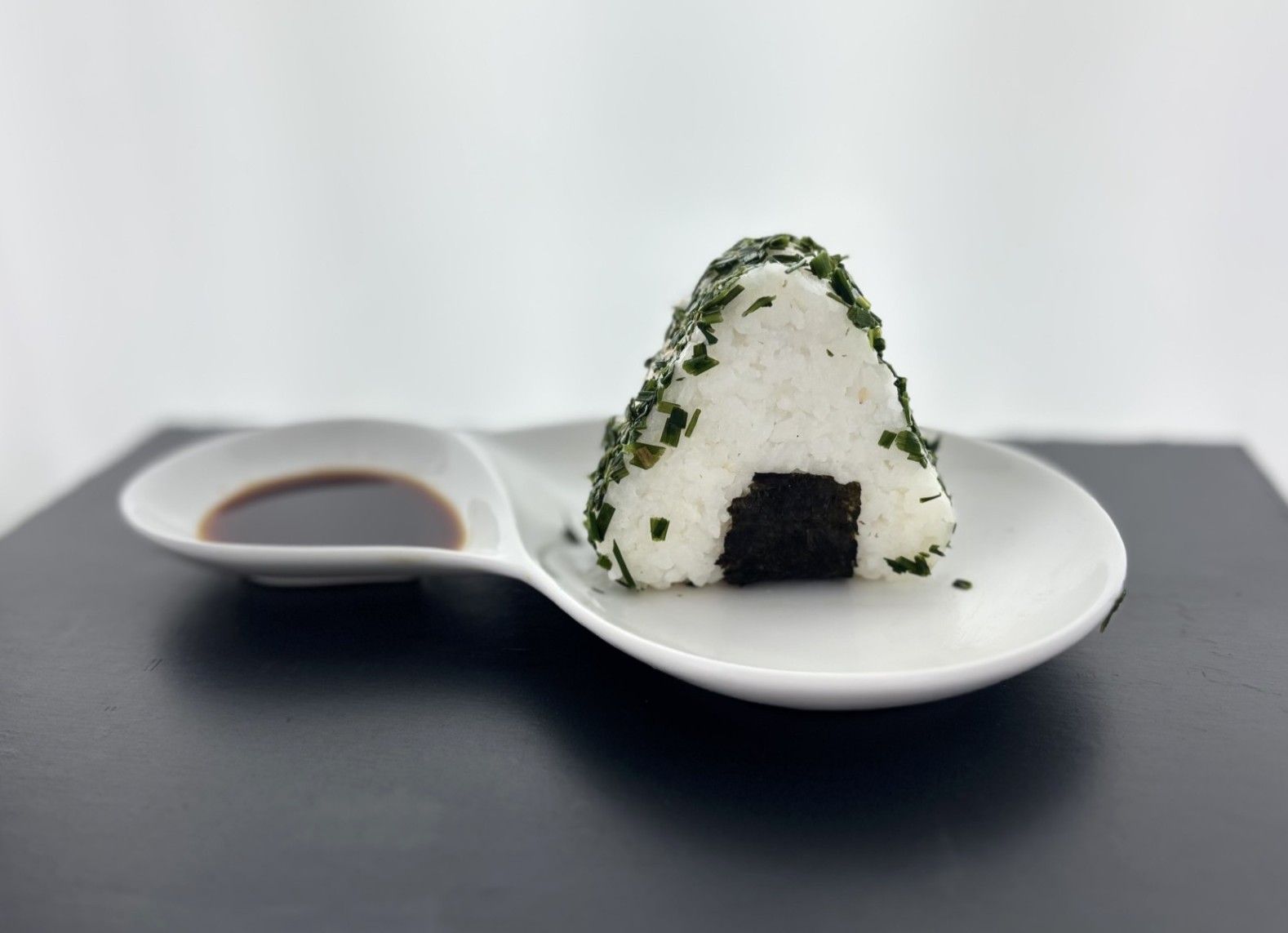 L’onigiri saumon avocat est une préparation à base de riz cuit assaisonné agrémenté de saumon cuit mayonnaise et d’avocat, le tout entouré de feuille d’algue nori et de ciboulette.