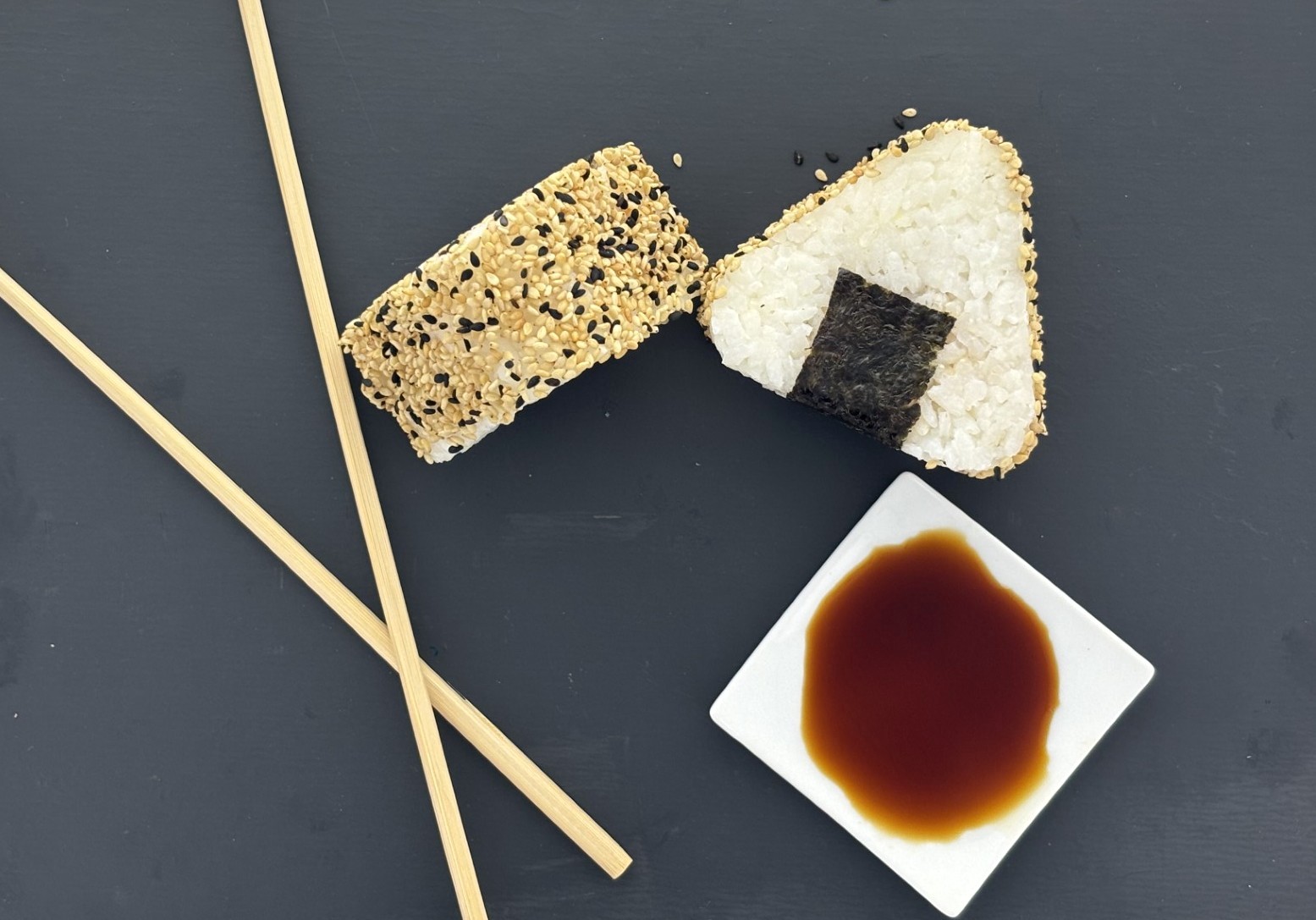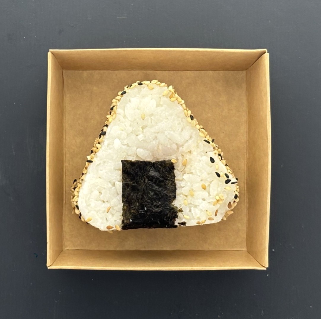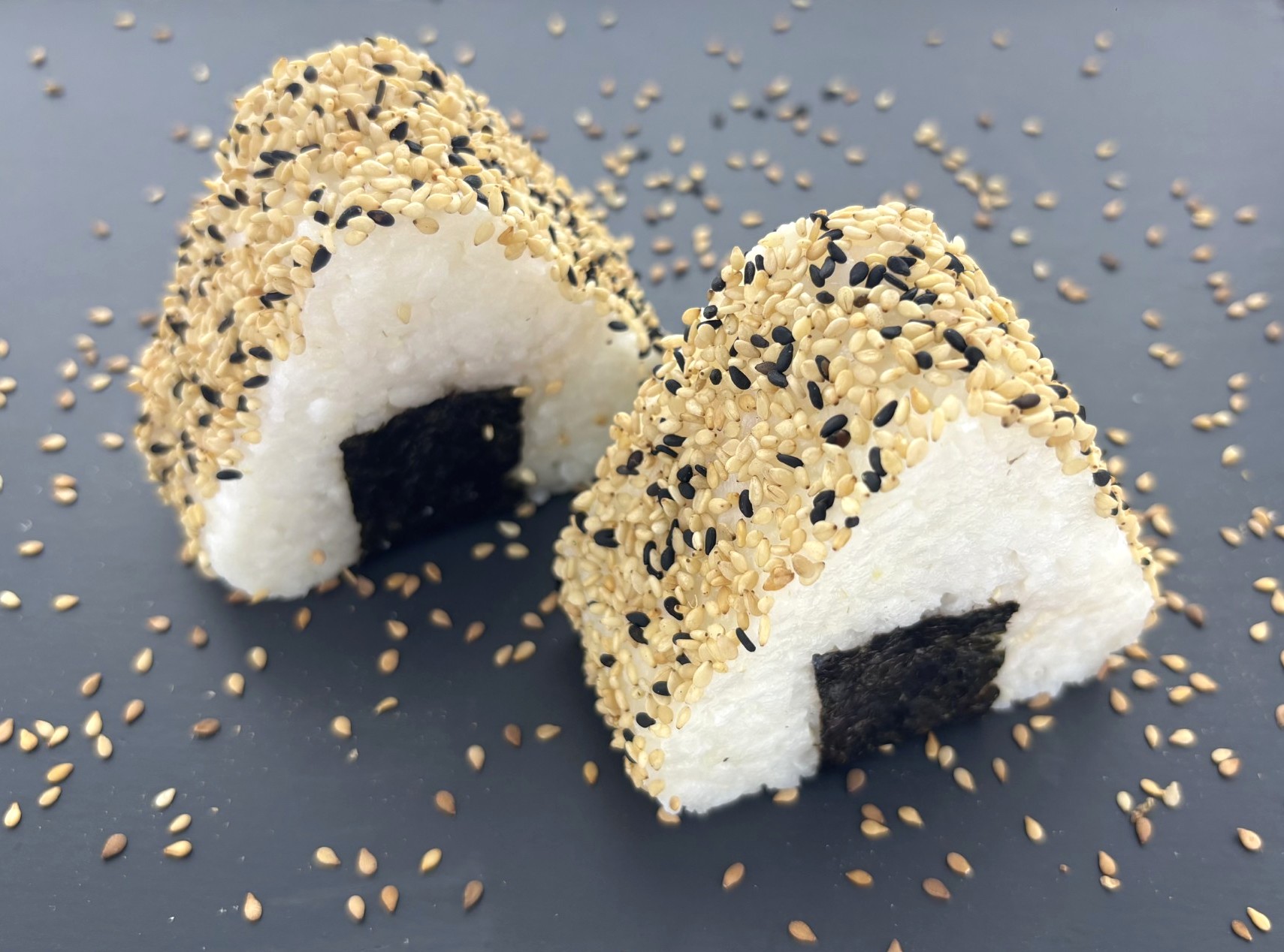 L’onigiri au thon est une préparation à base de riz cuit assaisonné d’une préparation de thon mayonnaise tomate concentré relevé au wasabi, le tout entouré de feuille d’algue nori et de sésame blanc et noir.